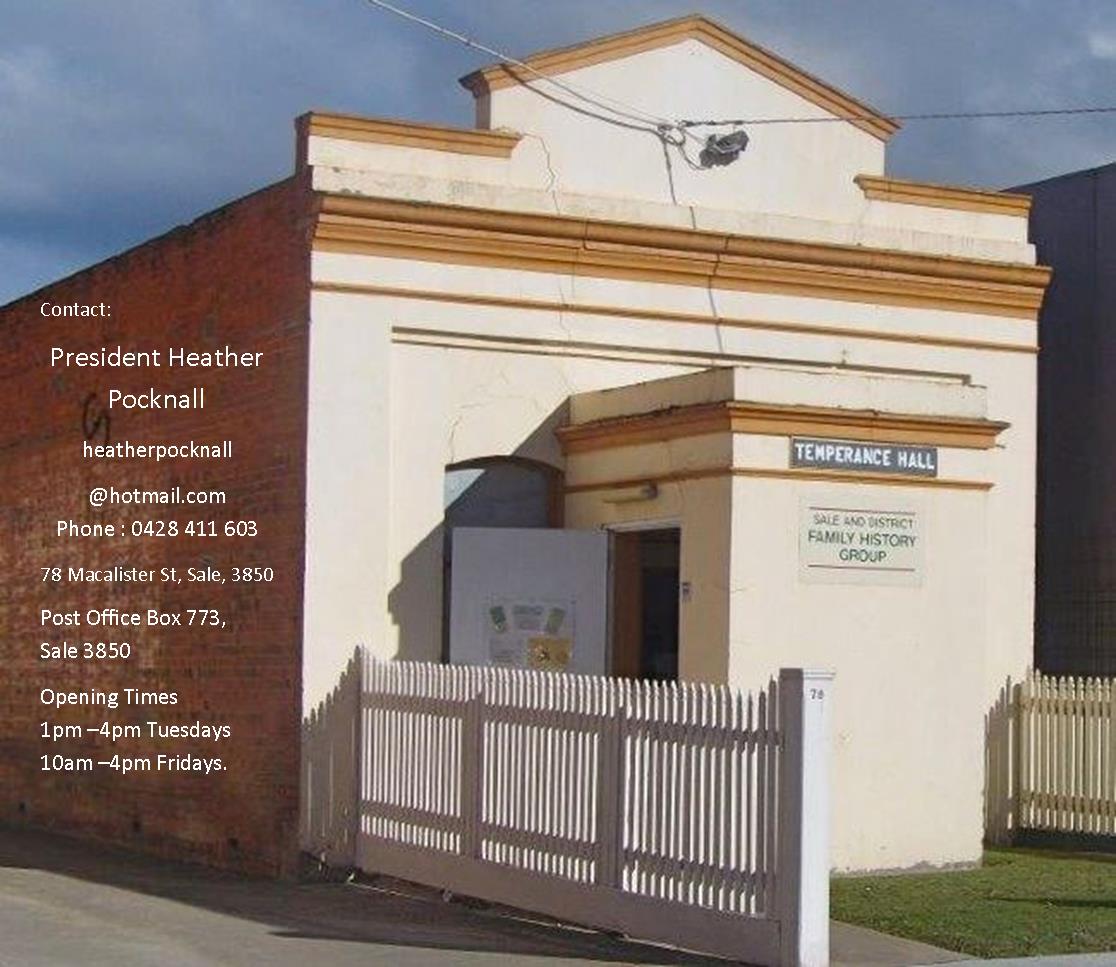 Come and visit us at the VAFHO Family History Expo or visit these organisations during your time in the Sale region.