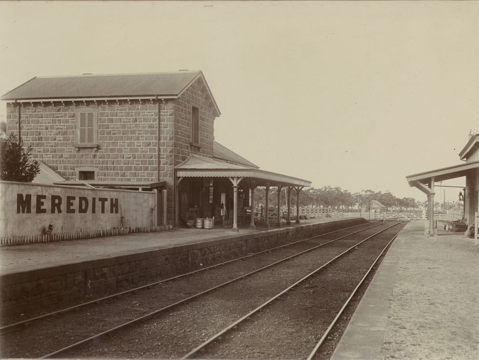 Michael Menzies was the guest speaker at a recent Geelong Family History Group Meeting. As well as sharing his in-depth knowledge of everything connected to Victorian Railways, Michael is sharing a number of items from his personal Railway History collection. (The image on the right is of the Meredith Railway Station source: State Library of Victoria FL10206652.)